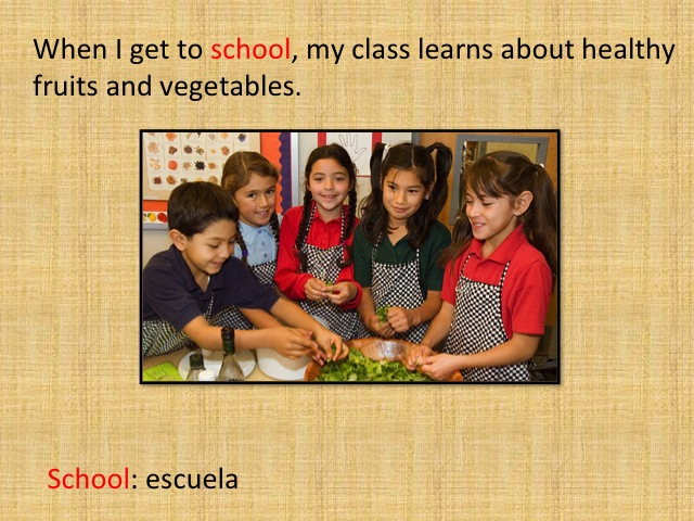 When I get to school, my class learns about healthy fruits and vegetables.